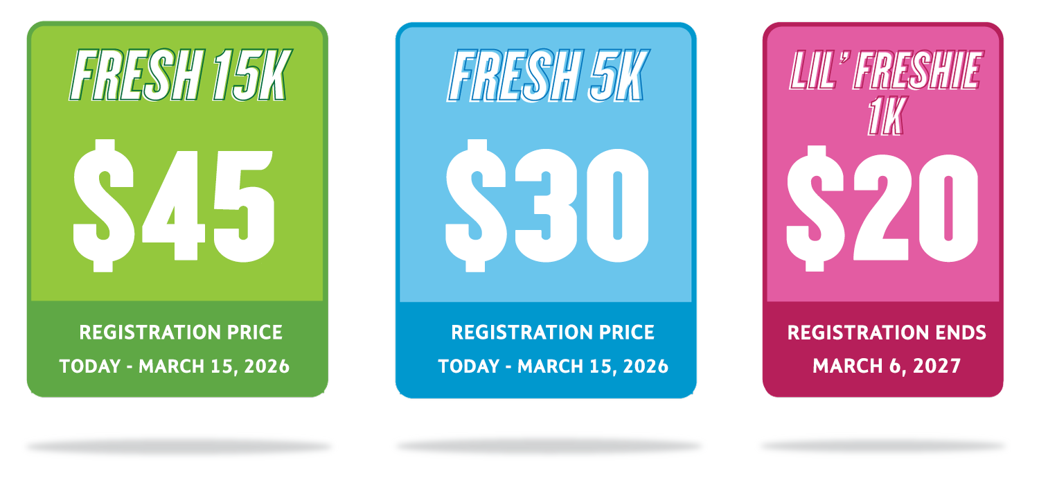 The 14th annual Fresh 15 race is March 6, 2027, starting at 7am.